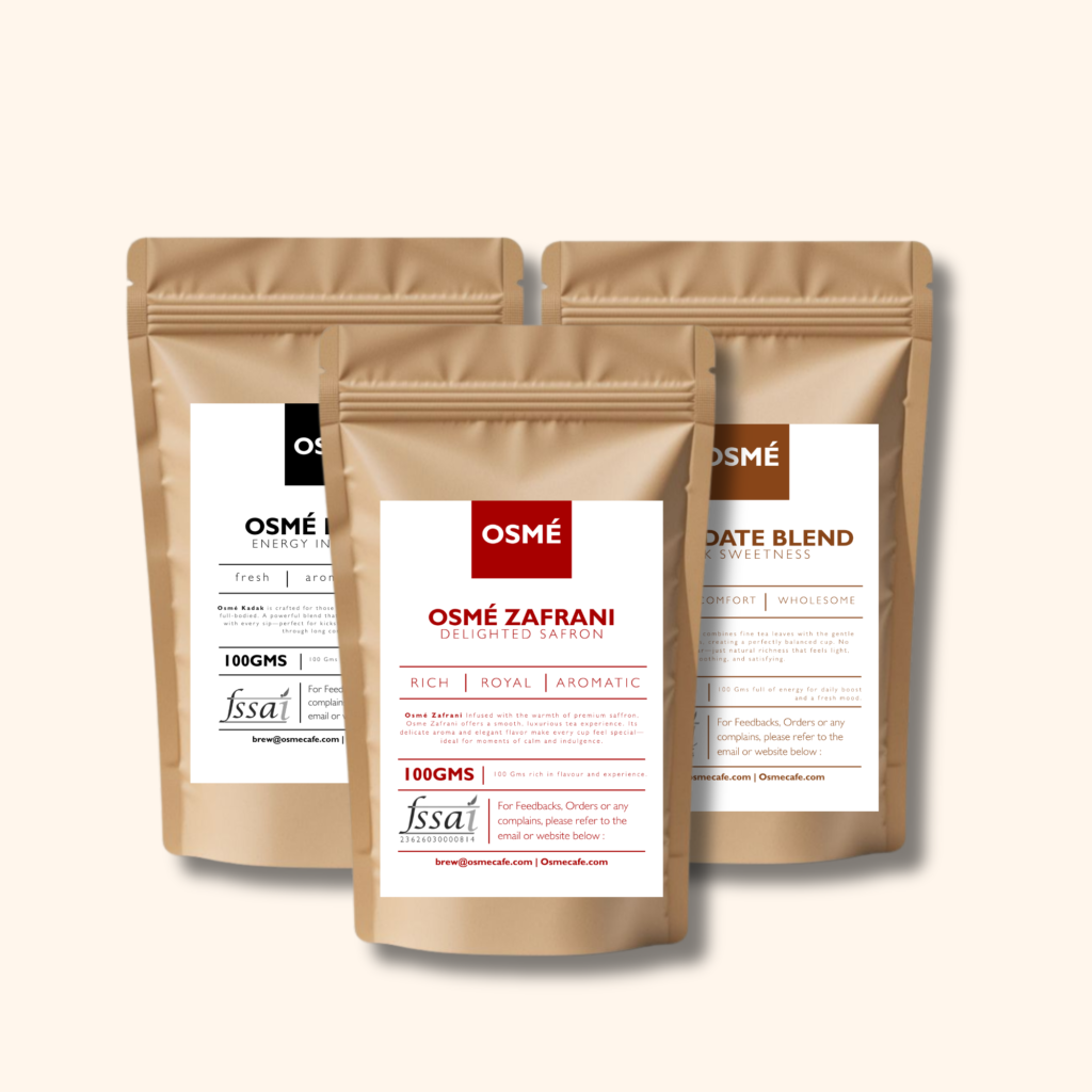 Chai nahi, OSME Piyo CHAI AS AN EXPERIENCE SHOP NOW Secure Payment100% Secure Payment 14 Days ReturnIf goods have problems 24/7 SupportDedicated support Free DeliveryFor all order from India Check out latest products New Arrivals View All SALE Osme Date Blend ₹99.00 – ₹394.00Price range: ₹99.00 through ₹394.00 Date BlendSelect options This product has multiple variants. The options may be chosen on the product page SALE Osme Zafrani Delight ₹112.00 – ₹482.00Price range: ₹112.00 through ₹482.00 ZafraniSelect options This product has multiple variants. The options may be chosen on the product page SALE Osme Kadak ₹99.00 – ₹399.00Price range: ₹99.00 through ₹399.00 KadakSelect options This product has multiple variants. The options may be chosen on the product page